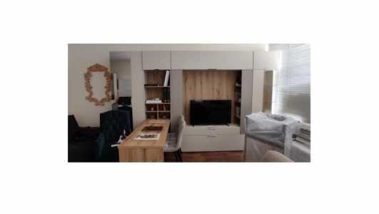 Продаётся новый мебельный комплект для гостиной, состоящий из стильного бежевого шкафа с зеркалом, витриной для посуды и...