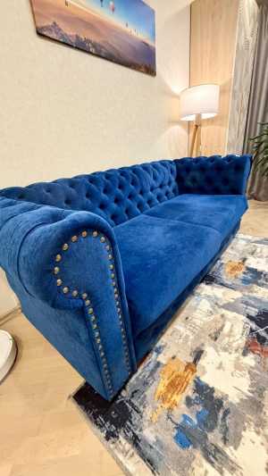 Роскошный синий диван в идеальном состоянии! Продаю стильный диван в насыщенном синем цвете.