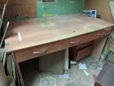 Стол деревянный прочный с тремя ящиками.Очень удобен для работ.Недорого. Размеры; длина 150см,ширина 80 см.высота 75 см