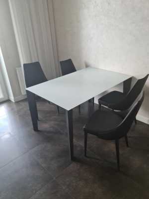 Стол из закаленного белого, матового стекла. Раздвигается в три этапа . Для большой, дружной семьи