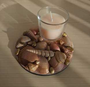 Интерьерный подсвечник для уюта или подарка. В тёплых пастельных оттенках. С аромасвечёй. Несколько видов ракушек.