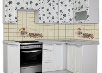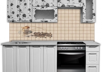 Недорогой Кухонный гарнитур в небольшую квартиру. Габарит: 1500 мм. МДФ фасады Хризантема чёрная-белый металлик.