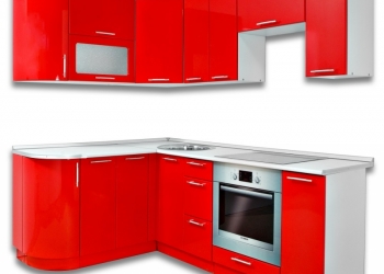 Габарит: 2100*1500 мм. Угловая МДФ фасад Красный глянец.