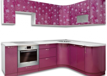 Габарит: 2350*1750мм. Угловая. МДФ фасад Хризантема фиолетовая-Фиолетовый металлик.