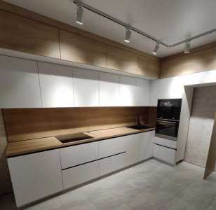 Кухня 3,5х1,5 м Фасады комбинированные лдсп/мдф покрытие эмаль/шпон фурнитура с доводчиками подсветка рабочей зоны...
