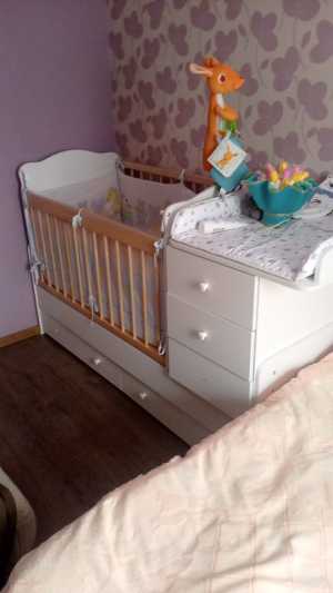 Кроватка с комодом и маятником и пеленальный стол Причина продажи хотим купить новую Потому что эта кроватка большая...