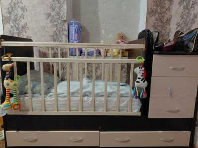 Продам кроватку с комодом в хорошем состоянии. Есть один изьян,сломалась одна ручка на ящике.