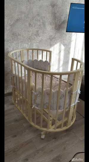 Цена за все. Можно по отдельности 1. Кроватка 6000 р. 2. Матрасик зима-лето 1500 3. Ящик 1000 р. 4. Бортики 1000 р. 5.