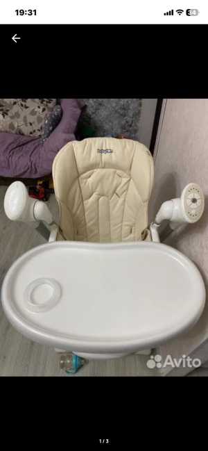 Стул для кормления, складной. Состояние хорошее. Удобный и простой в обслуживание. Koмпактный размер в сложенном состоянии.