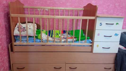 Продам кроватку с комодом в хорошем состоянии. Есть один изьян,сломалась одна ручка на ящике.