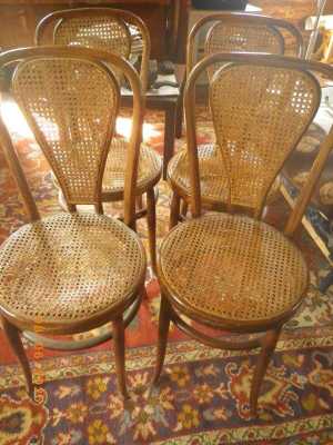 Четыре деревянных стула 1980-х годов. Коричневые, легкие. Сиденья нуждаются в обновлении.