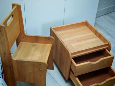 Детская мебель - растущий стул и тумбочка "Школярик" для детского рабочего места. Натуральное дерево, массив бука.