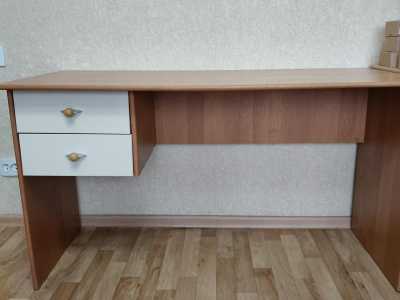 Продаётся письменный стол из светло-коричневого дерева с двумя удобными выдвижными ящиками.