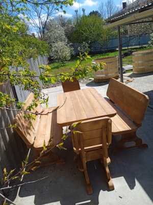 Стол с лавками из массива сосны.изготовлен и обработан для использования под открытым небом круглый год .есть разные размеры