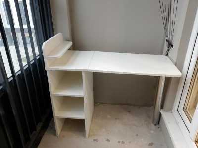 Стол качественный, подойдет для любых помещений. Использовался в качестве компьютерного. Красился для себя! Цвет бело-серый.