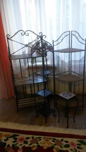 Кованая мебель. Красивые кованые этажерки. Складные. Состояние очень хорошее. фото 2 Этажерка кованая с деревянными полками.
