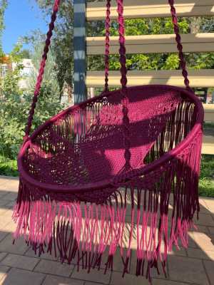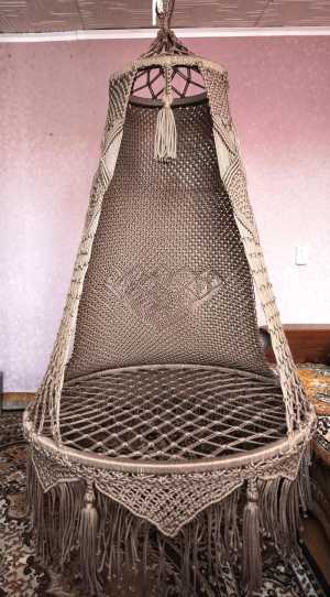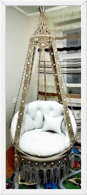В наличии подвесное кресло ручной работы в технике макраме. Выдерживает вес до 150 кг. Диметр колец 70/90 см.
