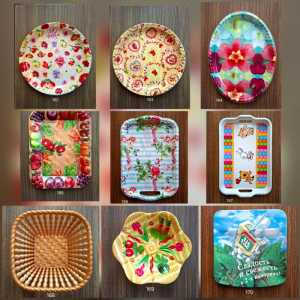 ○ ТОВАРЫ ДЛЯ СЕРВИРОВКИ ○ /пластик/ 162. ○ БЛЮДО КРУГЛОЕ цветное, пластик - 1шт. ДхВ - 345х30мм • ЦЕНА ●200 ₽ 163.