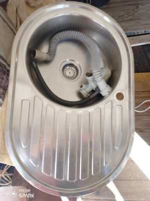 Новая металлическая раковина для кухни в упаковке. Распакована для съёмки и снова запакована.