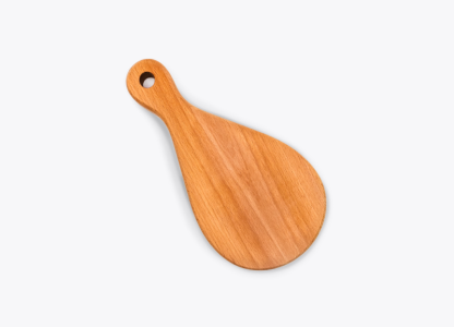 Доска необычайно красивой формы изготовлена из массива бука. Это экологичный, долговечный и гигиеничный материал.