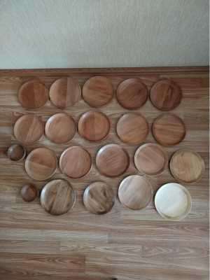 Посуда из дерева. Бук, дуб. Пропитка льняным маслом и пчелиным воском. Диаметр 19см. Высота 2 см.