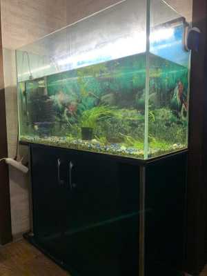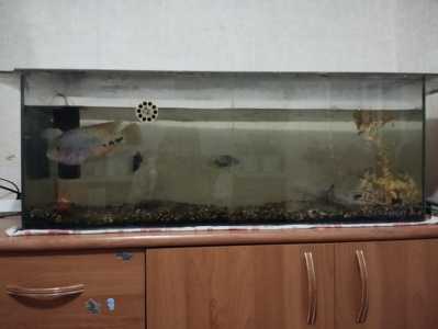 Аквариум. д150 в50 ш60. 450л. с тумбой выс 142см. Полностью оборудован. По всем вопросам звоните,всё объясню.