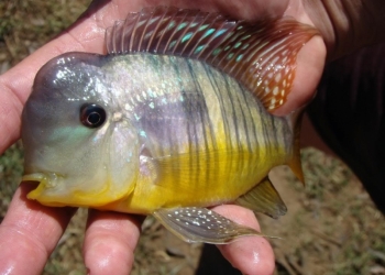ГЕОФАГУС СУРИНАМСКИЙ (Geophagus surinamensis) размеры от 5см Верхняя часть тела темно-зеленая, брюшко желтоватое.