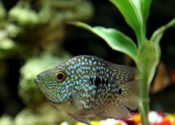 ГЕОФАГУС СУРИНАМСКИЙ (Geophagus surinamensis) размеры от 5см Верхняя часть тела темно-зеленая, брюшко желтоватое.