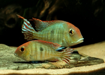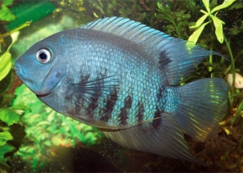 Никарагуанская цихлазома ( Cichlasoma nicaraguense ) размеры от 4 см покоряет необычная внешность и оригинальная окраска.