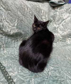 Одной черной кошке очень нужен хозяин и свой уютный уголок.