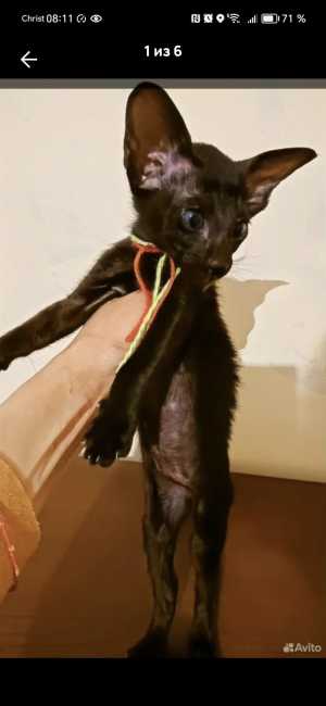 Котик. Ориентальной породы. Примерно 3 месяца. Черный с зелеными глазами.
