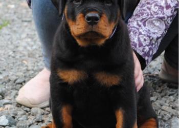 Предлогается щенок ротвейлера от шикарных родителей.возраст малыша три месяца.сделаны все прививки