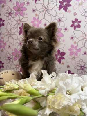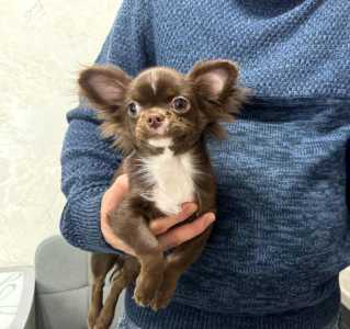 В продаже очень красивая девочка чихуахуа редкого лилового окраса, длинношерстная.