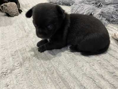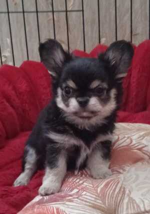Шикарная породная малышка чихуахуа длинношерстная чёрная с голубым подпалом , размер -некрупный стандарт, без недостатков...