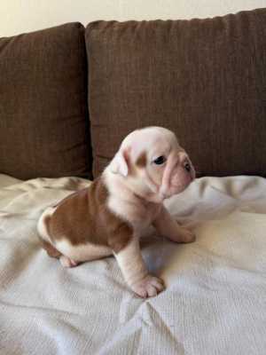 Щенок бульдога, мальчик , род. 14.12.2025. Очень активный, любознательный, стандартного рыже-белого окраса.