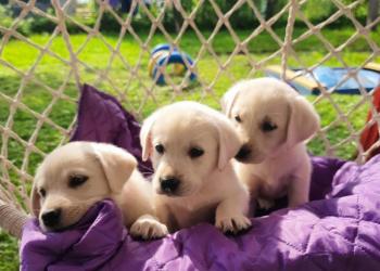 Лабрадор окрас белый четыре мальчика и две девочки породистые игривые 3 месяц с прививками , характер послушный...