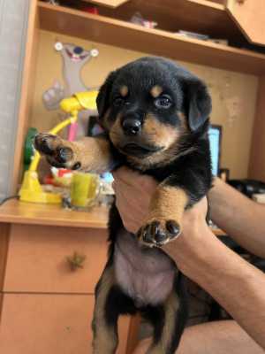 Продается щенок ротвейлера девочка. Родилась 20 июля, хвост купирован. Игривая, активная, кушает каши, корм, мясо.