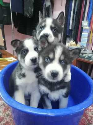 Продам щенков хаски два мальчика а девочка черно белая бронь . Щенки уже кушают сами и готовы к переезду.