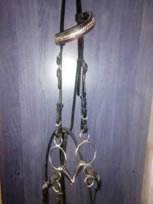 Оголовье с олимпийским трензелем, капсюлем и поводом. Использовалось 1 раз на соревнованиях. Обработано и почищено.