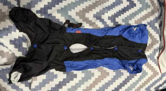 Новый зимний комбинезон из не промокающей ткани с плюшевой подкладкой, размер М , резинка на шеи и талии 38 см от холки...
