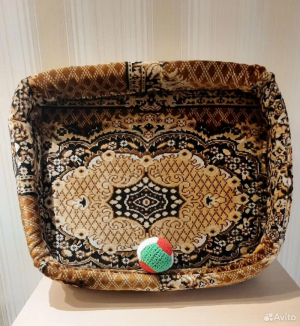 Размеры 61×61×21. Ручная работа. Новая. Состав: поролон (основание - толщина 10 см, борта - толщина 3 см), джинс.