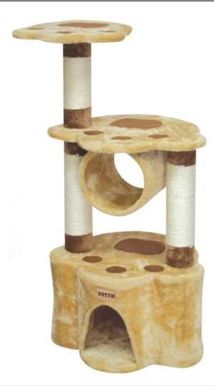 Б/у, в хорошем состоянии. Напольная, вертикальная, трёхуровневая. Имеет: домик, три лежанки, трубу, три когтеточки.